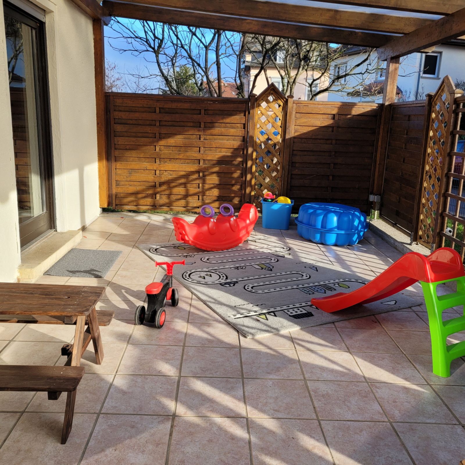 Terrasse, toben, rutschen, wippen